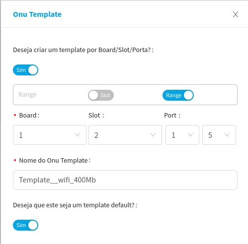 When active, this feature will work as a type of filter, ensuring that this template is only displayed for specific ONUs. The feature is a type of filter that will separate the templates for more specific cases.