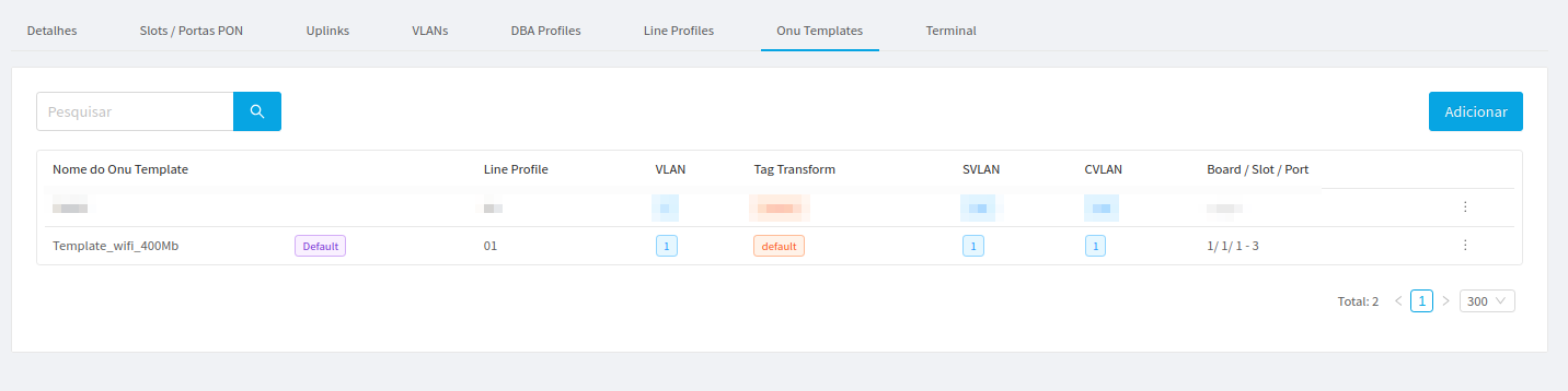 - Thus, the user will be redirected to the chosen OLT management screen.