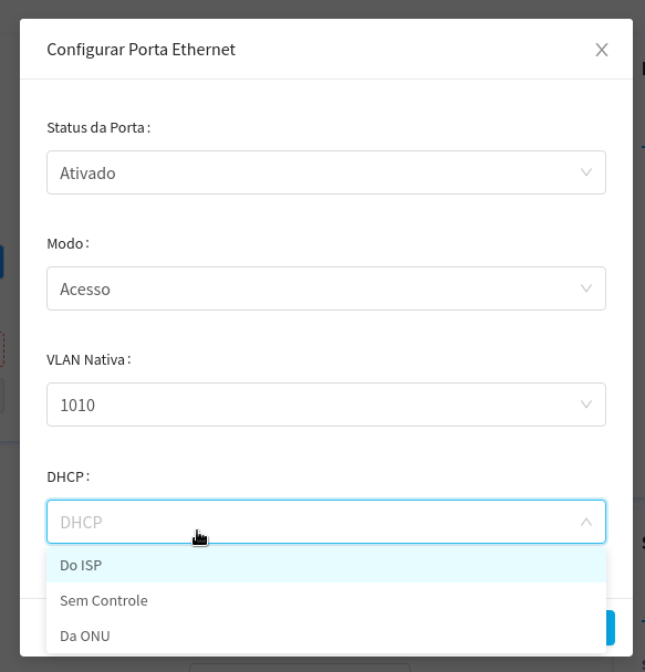 Here we can choose how DHCP will be configured, in this example we will use ISP control